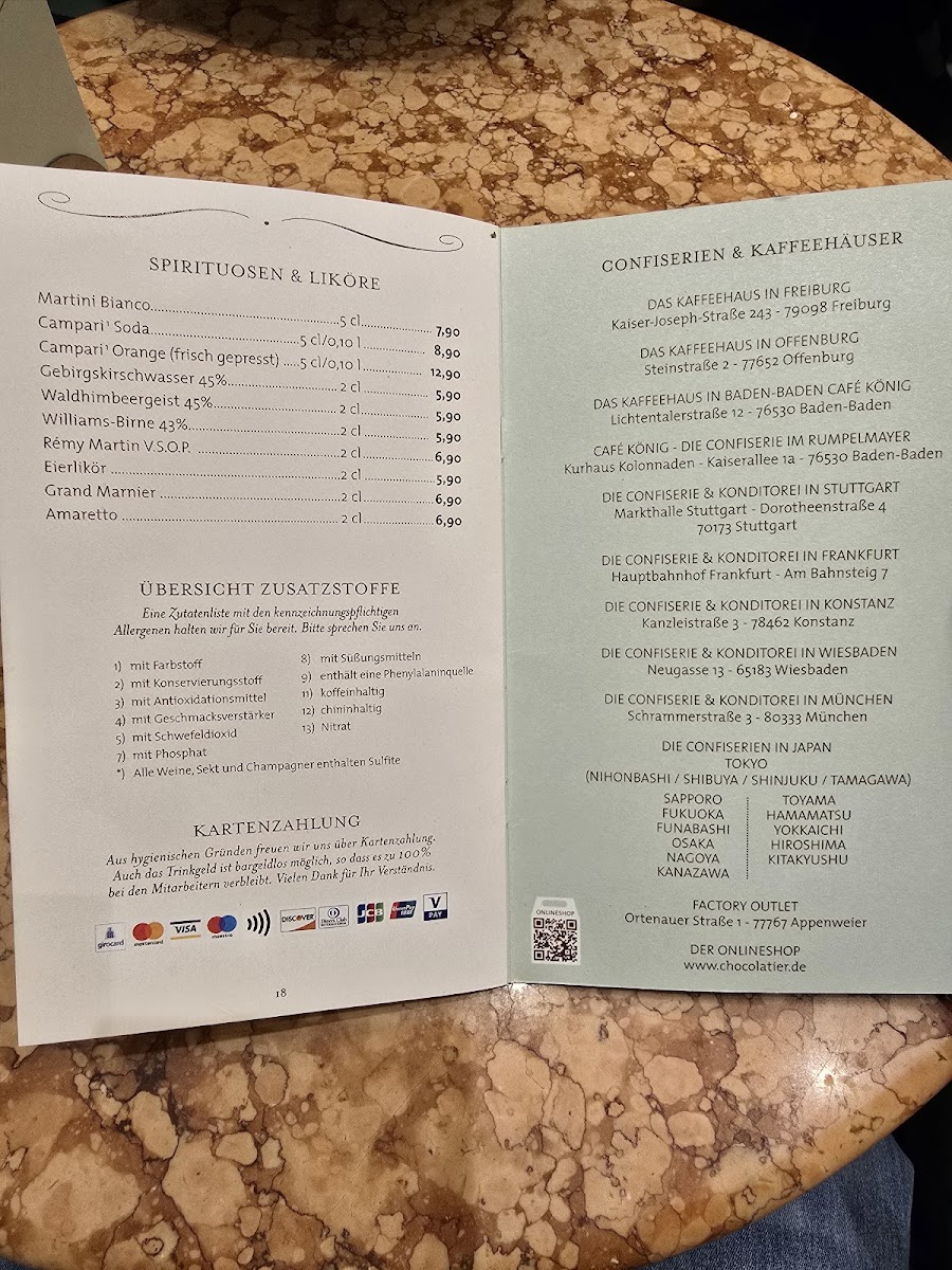 The menu at Confiserie Cafe Gmeiner features a variety of offerings centered around pastries, cakes, chocolates, and beverages. It includes traditional and artisanal items such as macarons, a selection of wedding cakes, and a range of pâtisserie specialties like Käsekuchen (cheesecake), Apfelstrudel, Schwarzwälder Kirschtorte (Black Forest cake), Mirabellentorte, and Himbeerschnitte. Additionally, the menu offers house-made pralines and chocolate products crafted onsite.