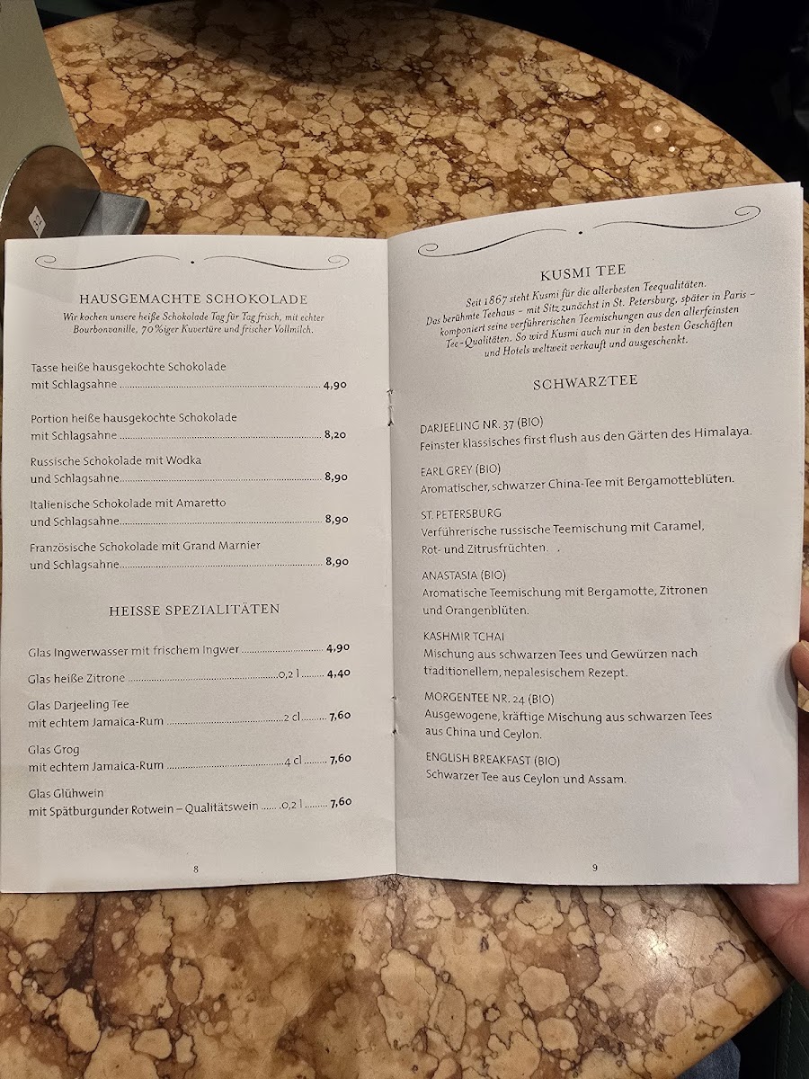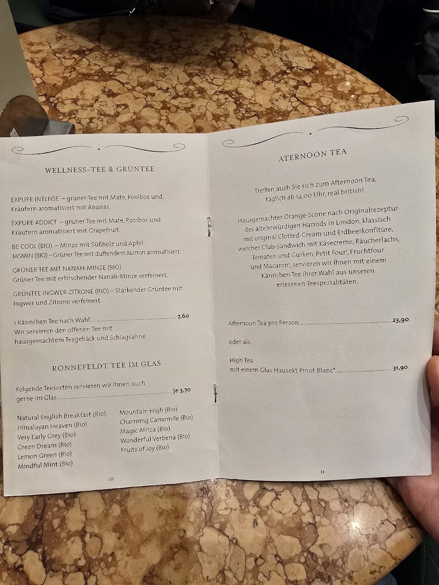 The menu structure allows for casual dining, whether ordering a quick coffee and pastry or enjoying a more extensive afternoon tea service available from 2 PM. The variety supports a range of visit purposes, from quick orders to relaxed light meals.